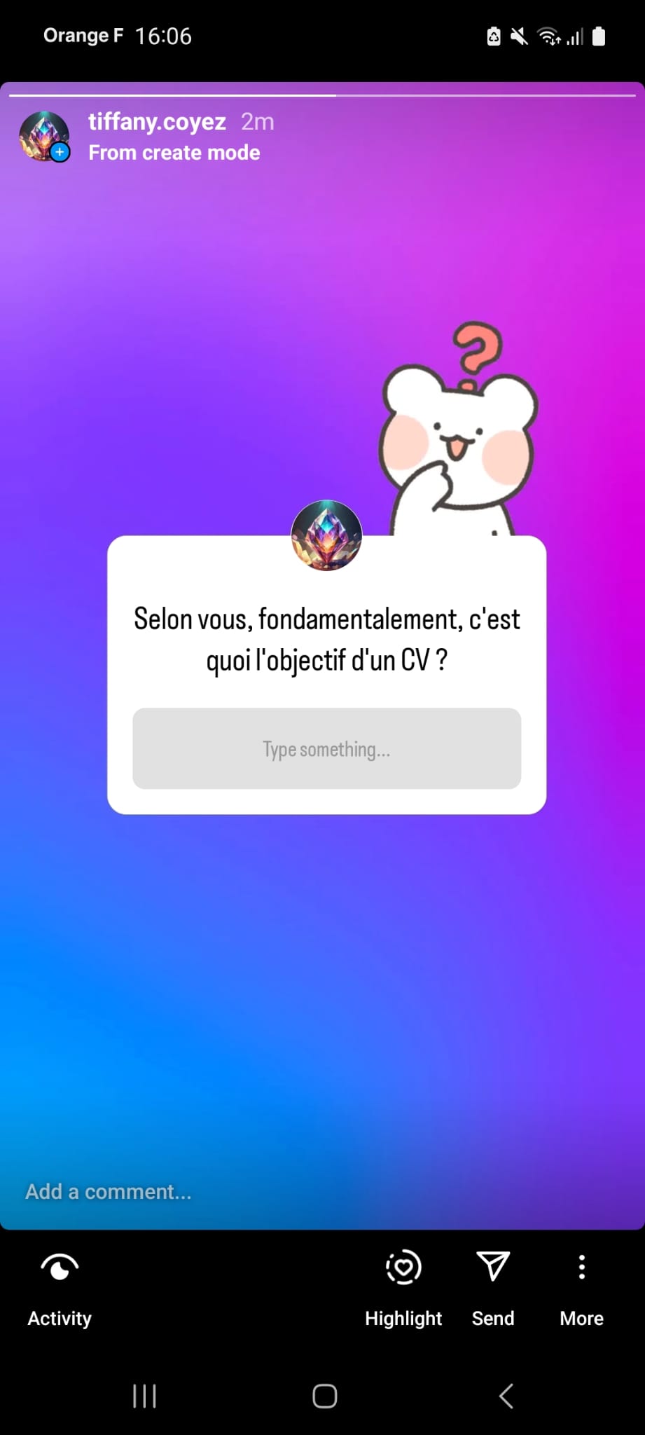 Je me suis alors dit "Et si je demandais l'avis de personnes qui baignent dans le CV ?". C'est-à-dire d'autres jeunes adultes en sortie d'étude et à la recherche d'un travail ? J'ai alors envoyé un sondage sur Instagram, mes abonnés ayant essentiellement ce profil.