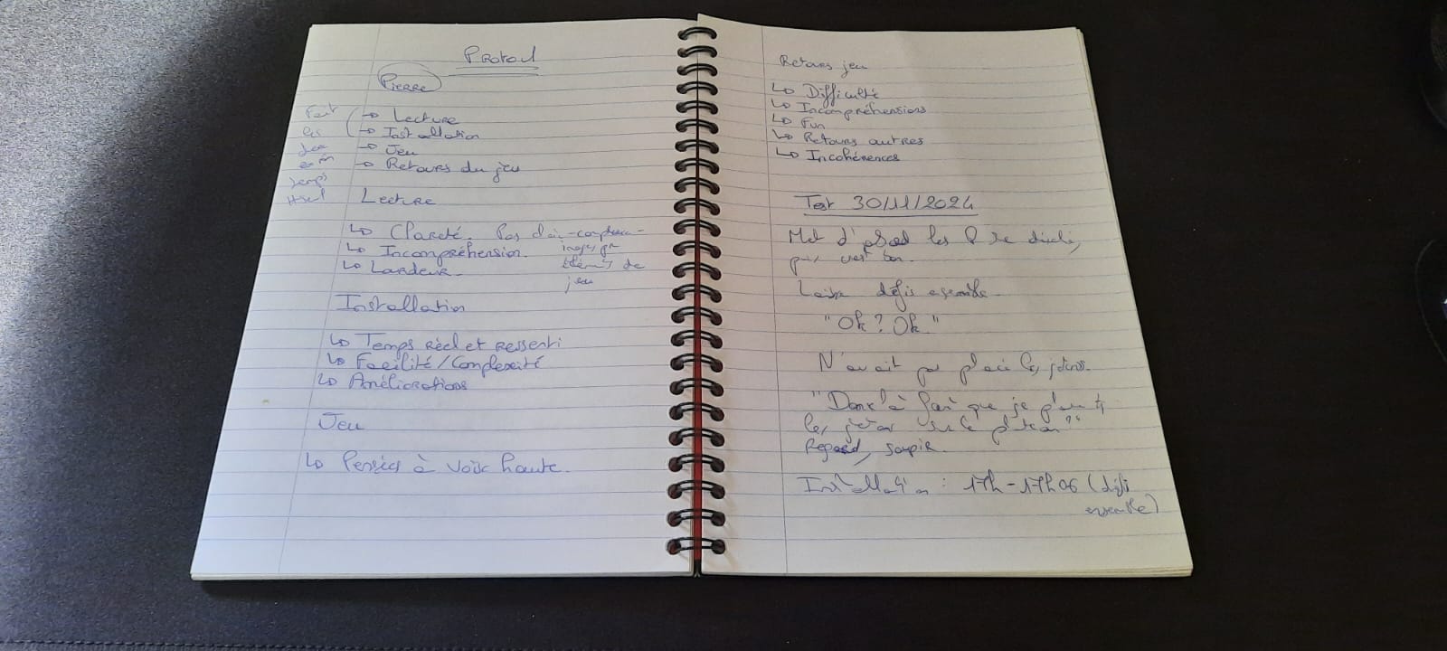 Une fois le premier prototype papier réalisé, j'ai dirigé un test de gameplay et d'utilisabilité auprès d'un joueur.