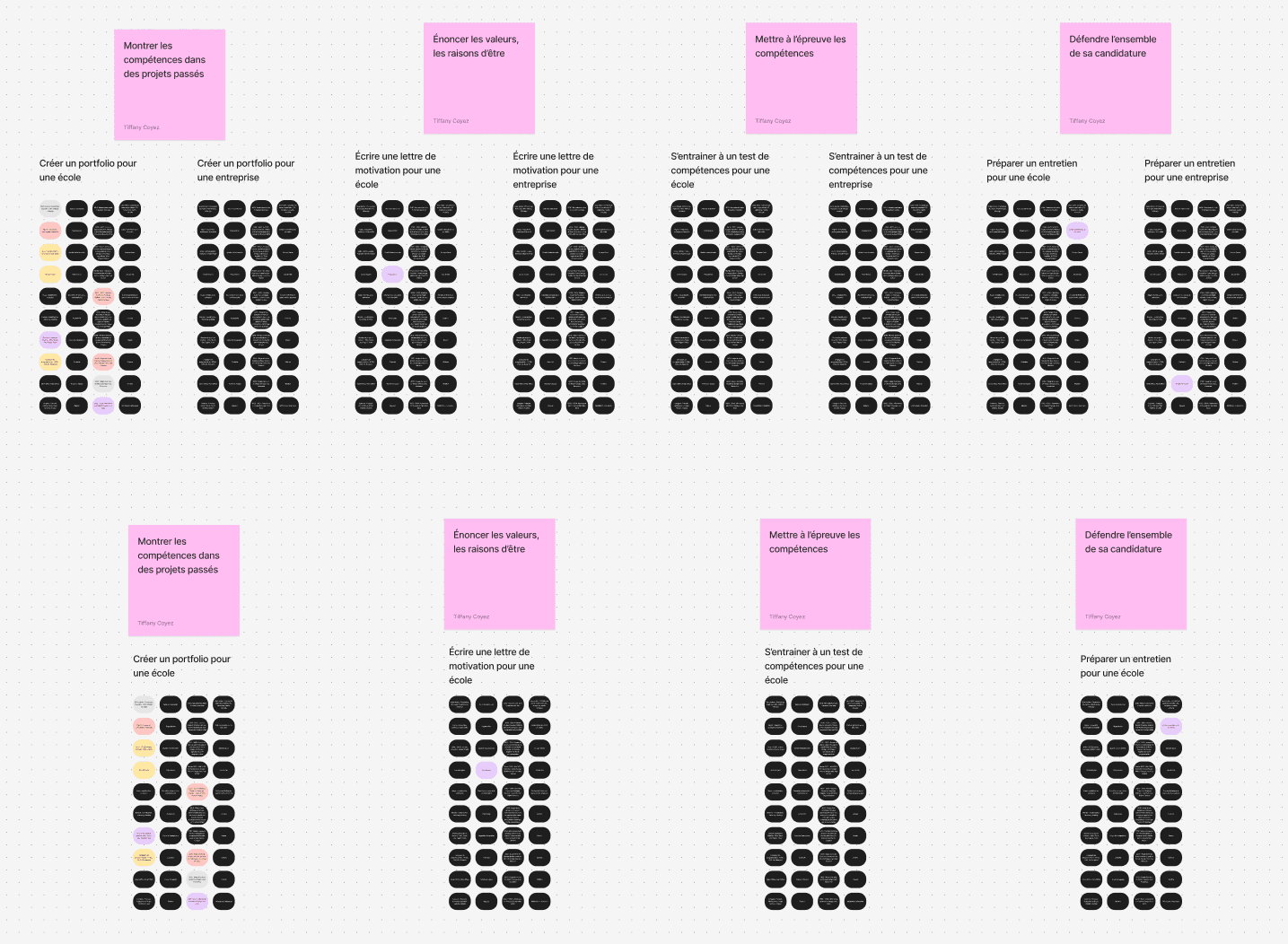 J'ai réuni les fragments de CV selon ces 4 objectifs, avec différentes positions sur le mandala.