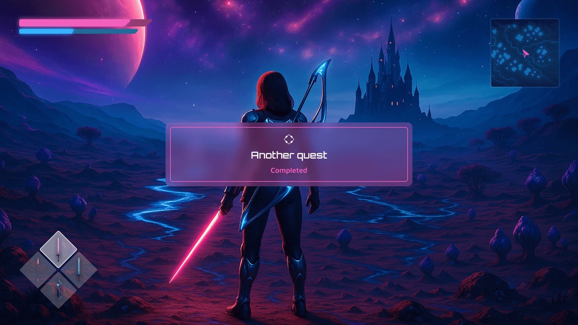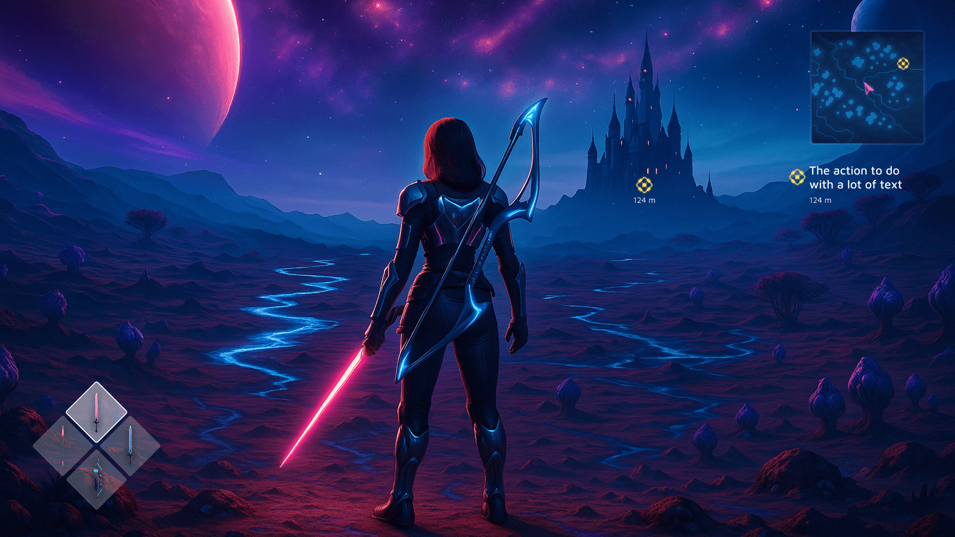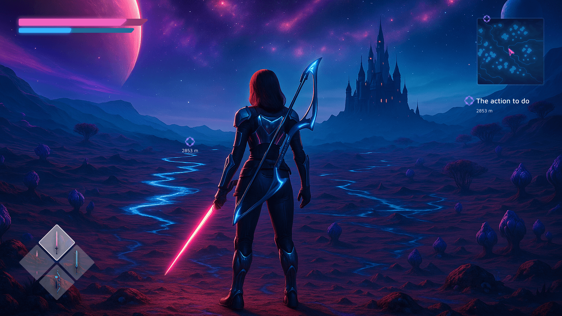 Dans cet univers futurist - fantasy, le gameplay repose sur une mécanique simple : maîtriser plusieurs armes et enchaîner des combos. J’ai donc conçu un design qui permet une lecture fluide en combat, et une navigation claire dans les interfaces secondaires.